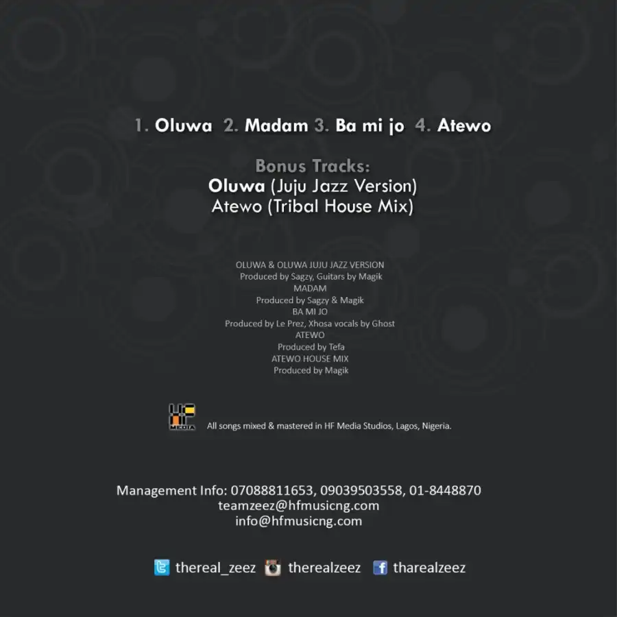 off "ZeezTheEp" Ep, recently released comes Oluwa, (God). A must listen track Mixed & Mastered in HF Media studio lagos.
